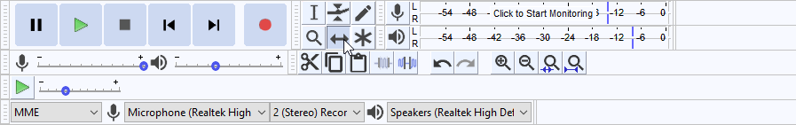 As we saw in the previous chapter, not only can you Cut or Copy a segment of audio track in Audacity, you can also Paste that segment at a different location, and as many times as you wish. We do this by selecting the audio segment of interest, then using Edit > Cut or **Edit > Copy, **depending on whether we want that segment to remain in its original place. We can also use the Cut or Copy buttons on the Tools toolbar: