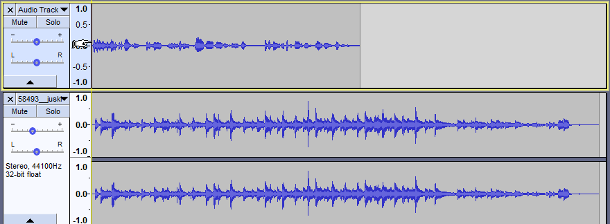 Here I have loaded an audio track (in mono), and a stereo music track beneath it:
