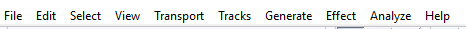 Note that the menu pictured here represents the default effects plug-ins in Audacity as of the 2.2.1 release (and there are a dozen more below those pictured in the menu here). The following table addresses only some of the most familiar effects from among those available. Within and beyond this set, you are encouraged to experiment.