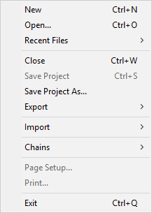 | Close | closes the current project window (will prompt you to save the current project if not already done) |