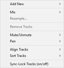 | Add New | Submenu allows you to add a new mono or stereo audio track, label track or time track. |