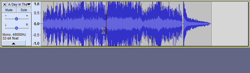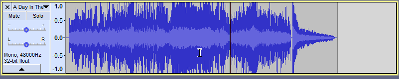 You will need to have Audacity open in front of you with an audio file ready to edit. The process of editing requires that you first know your source file quite well, or more specifically the audio track wave-form of that file loaded into Audacity. You need to know exactly where a cut needs to be made, to achieve some intended effect, so play the audio track repeatedly and listen for where you want to make your first edit.