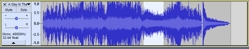 If you wish to shift audio from one place to another then you can easily do so with Audacity. First select the area you wish to shift. I will use the same segment I used in the cutting example above. Now, as before, choose Edit > Cut to remove the selected region from the track and place it on the clipboard.