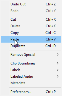 The audio segment will now be inserted, and you if you look at the Audacity window you should see the selected audio in its new place :